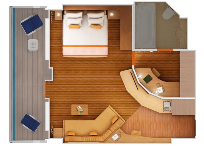 VS - Suite Vista 23 m² + rohový balkón 20 m². 4. až 8. paluba. Výhody Suite. | 3 430 € 1 715 € za osobu | ||