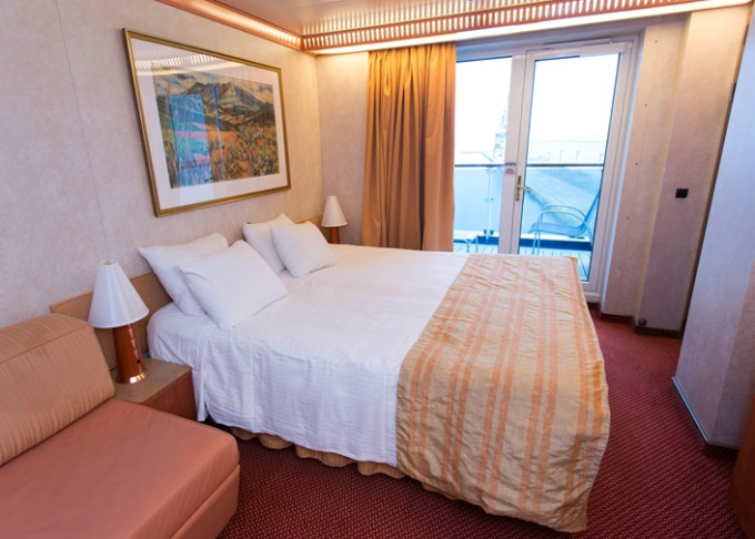9B - Kajuta s balkónom Premium 21 m² + balkón 8 m². 6,7,8. paluba. | 2 568 € 1 284 € za osobu | ||