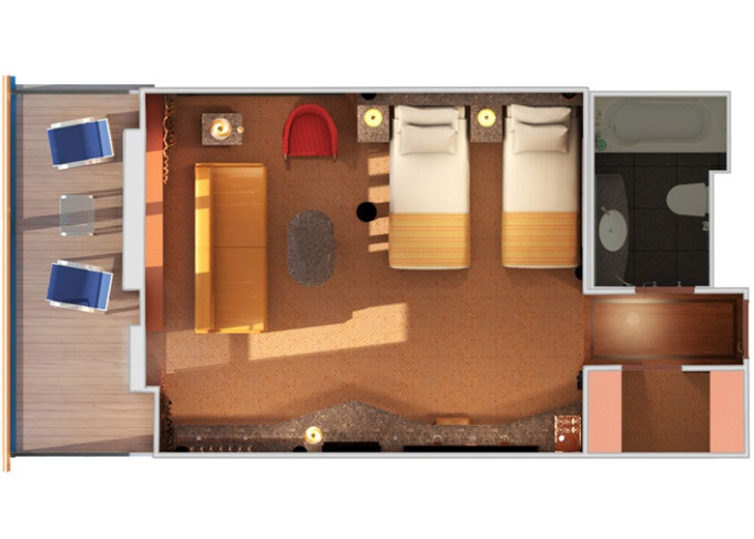 | ES - Grand Suite s veľkým balkónom 30 m² + balkón 10 m². 6. paluba stred. Výhody Suite. | 2 884 € 1 442 € za osobu | ||