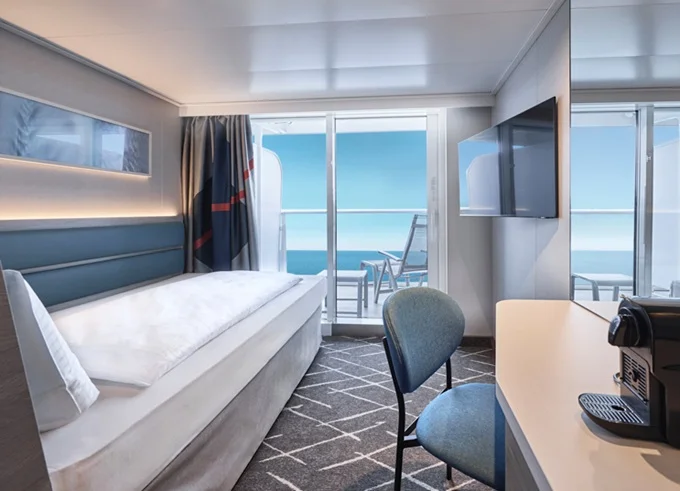 | SSAO - Schöne Aussicht Suite 39 m² + balkón 10-12 m² s ležadlami a hojdacou sieťou. 7-14. paluba. Max 4 osoby. Výhody Suite. | 5 007 € 1 669 € za osobu |